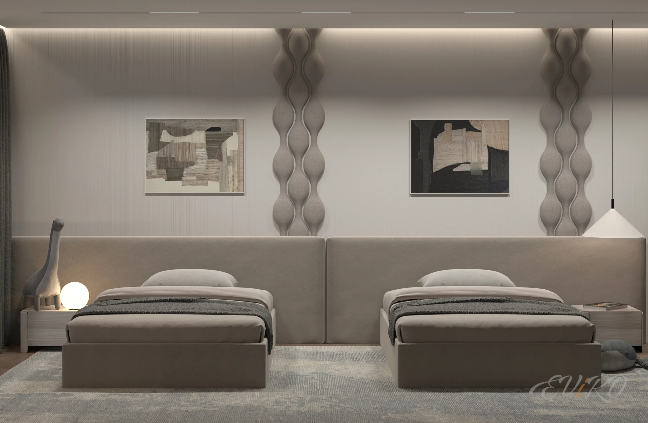Трехмерная панель ЕВиРО «Роберта» ( гипсовые панели W217 PILLOW ) привлекает своей простотой и неприхотливостью в уходе, а также легким и не затратным монтажом. По желанию заказчика, плавно перетекающие «пузыри» 3D панели могут быть выполнены в любом цвете. Текстура данной модели позволяет создавать завораживающие орнаменты стен, а ее иррегулярные формы создают впечатление броуновского движения частиц и имитируют игру цвета и объема, что вносит определенную динамику в весь интерьер комнаты.
