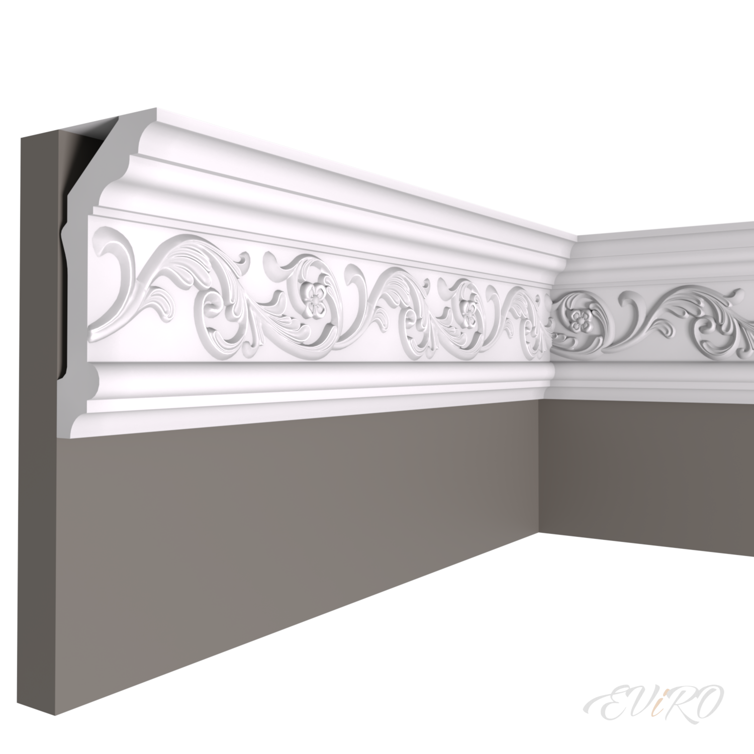 Специалисты компании ЕВиРО с большой ответственностью подошли к создаваемым моделям гипсовых карнизов с орнаментом, каждая модель неповторима и по-своему уникальна. Материал, из которого изготавливаются карнизы фабрики ЕВиРО, скульптурный гипс, армированный стеклофиброволокном, является экологически чистым, не горючим, влагоустойчивым, а так же прочным и долговечным. Карнизы ЕВиРО из скульптурного гипса могут быть окрашены в любой цвет, а так же могут быть отделаны с эффектом серебра, золота, стали, дерева и другого декоративного напыления. Гипсовые карнизы ЕВиРО совмещают в себе красоту и надежность. Применение карнизов ЕВиРО в интерьере обеспечивает определенный шик и уют.